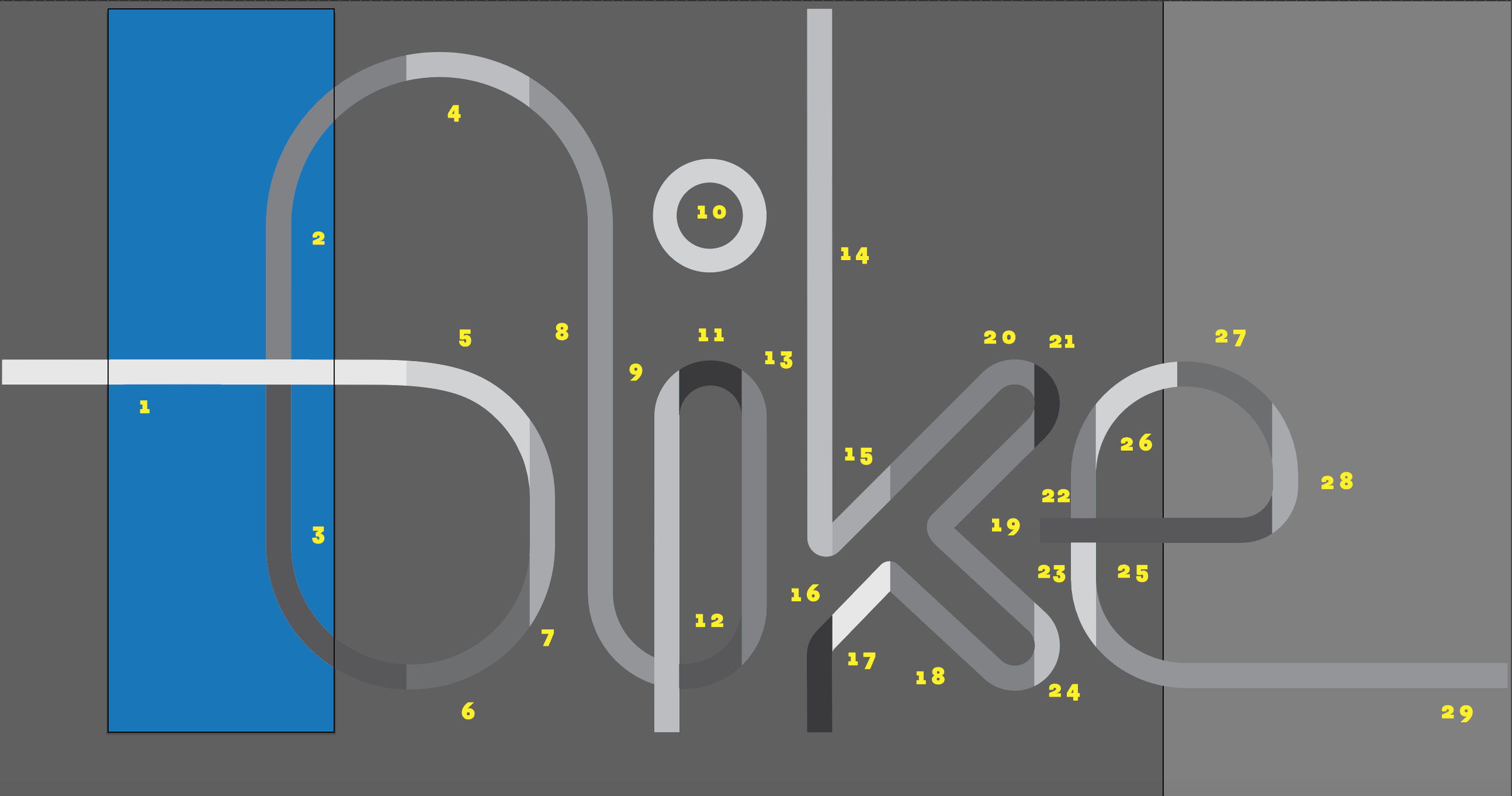 After rounds upon rounds of exploration, I finally settled on these proud-standing letterforms—each inspired by the effortless flow of biking, and the many paths that can be found along the ride.