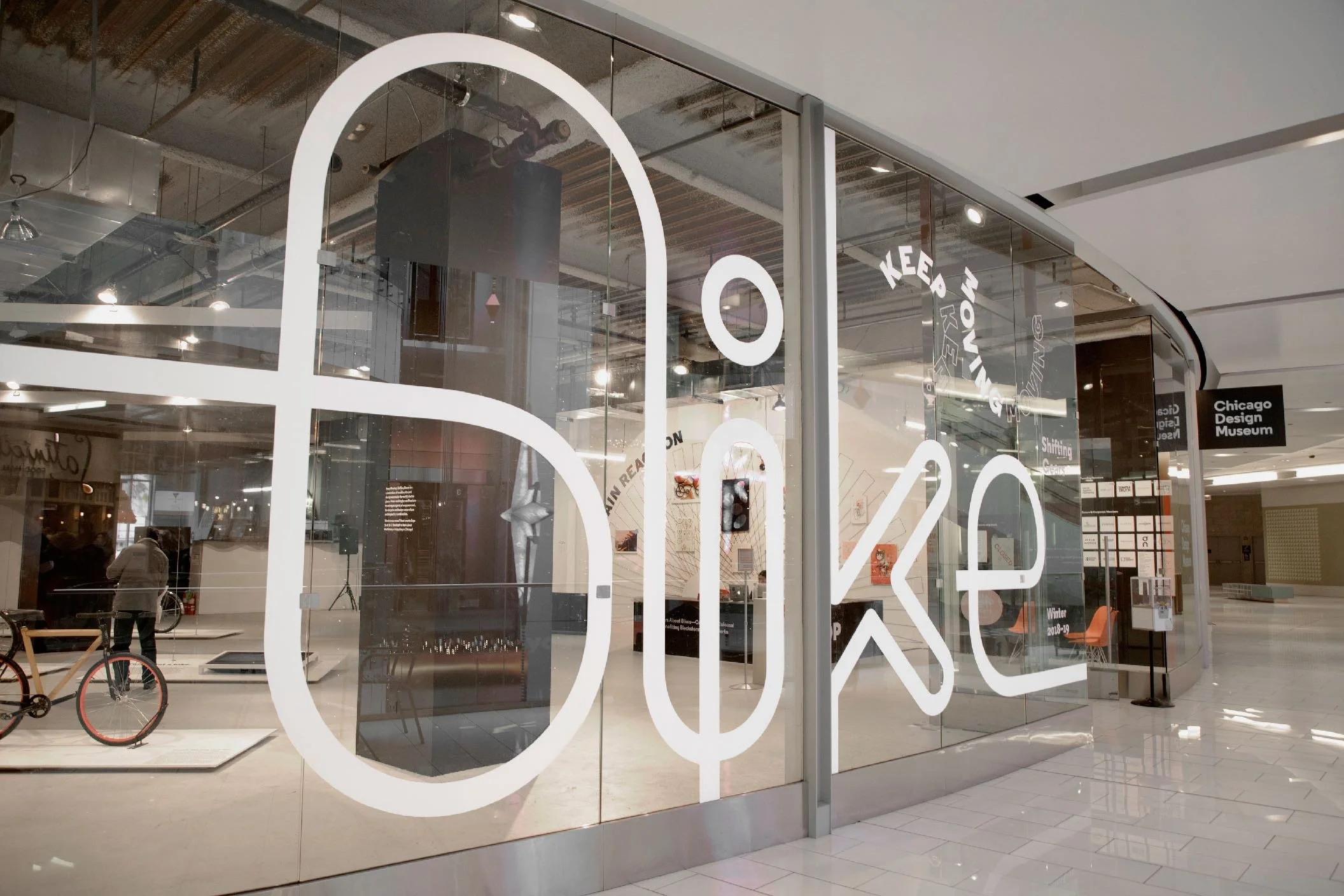 In my closing year of undergrad, I was entrusted with the task of designing a site-specific window graphic for the Keep Moving: Shifting Gears companion exhibit. The graphic needed to be scaled-up large enough to bring visibility to the museum, yet minimal in its design so that the greater portion of the glass would remain exposed.